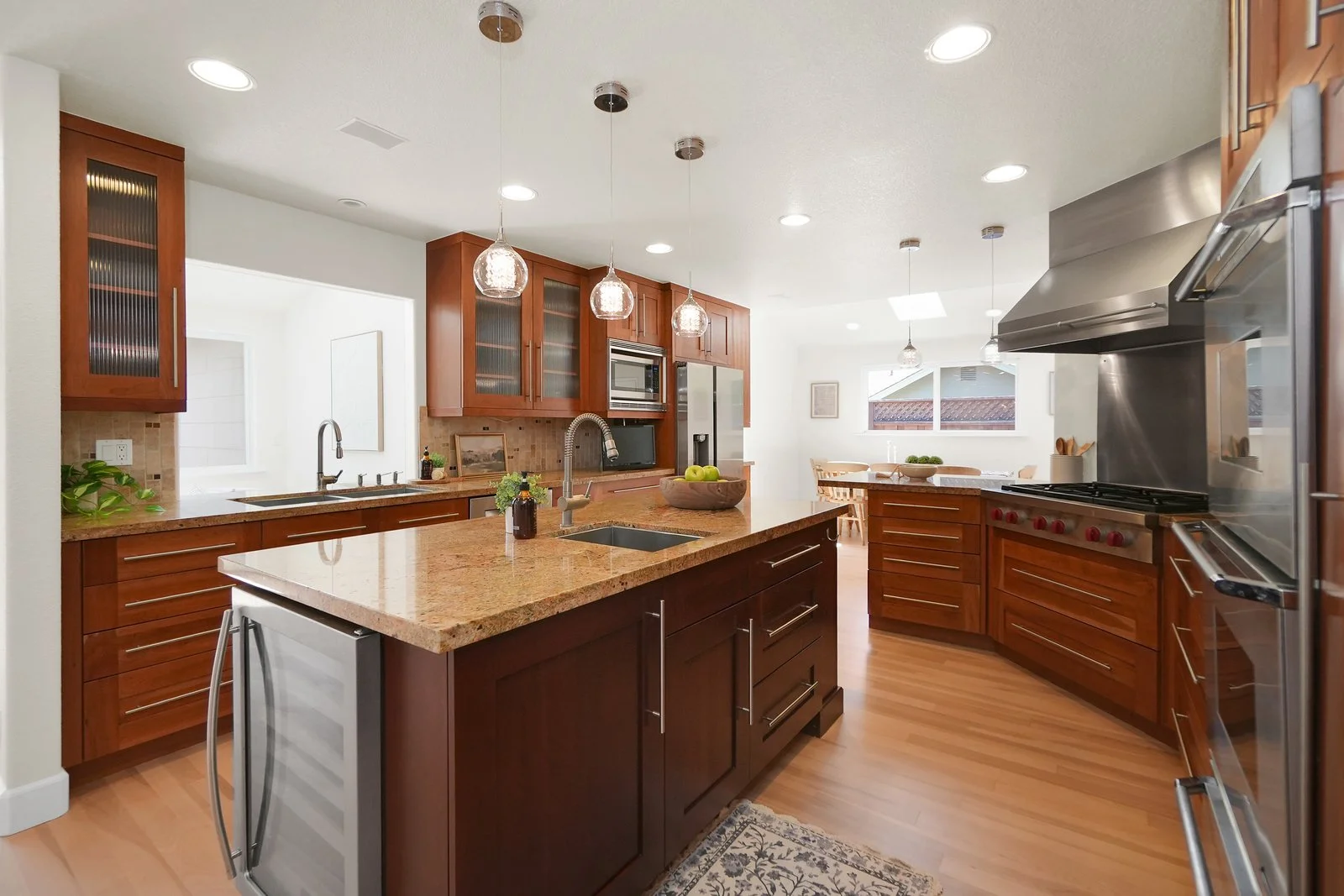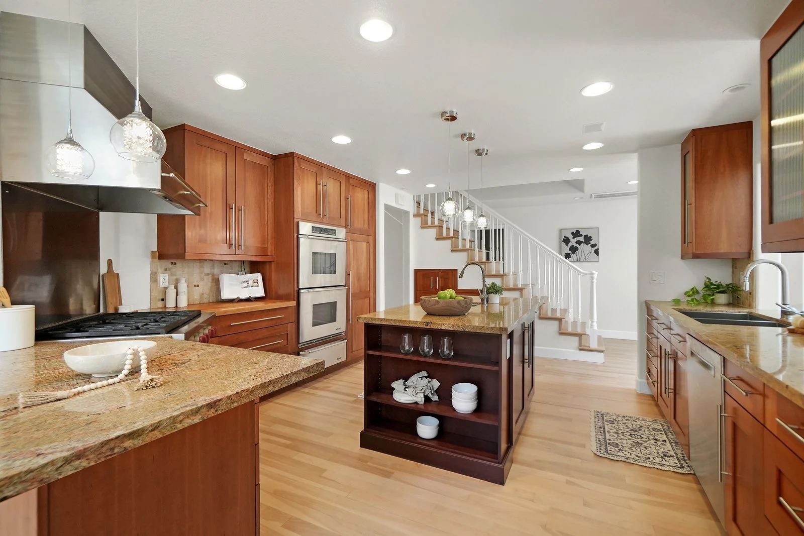 Warm wood cabinetry + ample storage